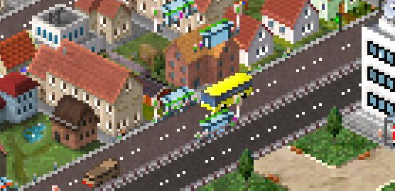 In contrast to road decorations, bus stops use a special frame format that makes them rotation aware by default. We must at least provide 4 frames, each 32x32 pixels each: